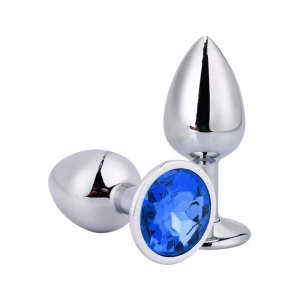 PLUG ANAL METAL CROMADO C/ PEDRA AZUL GRANDE